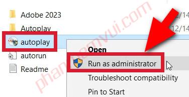 Mở file autoplay bằng Run as administrator.