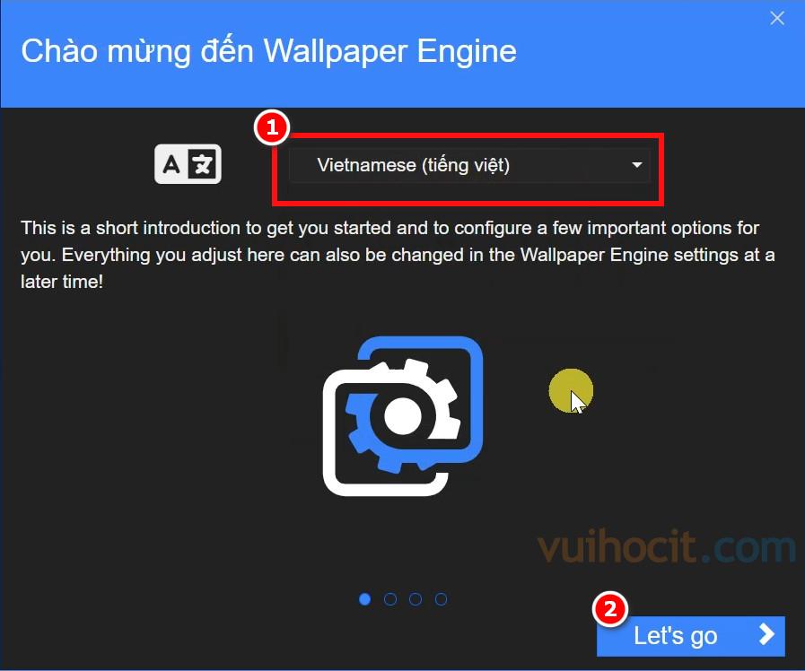 Lựa chọn ngôn ngữ Tiếng Việt hoặc ngôn ngữ khác tùy vào nhu cầu của bạn. Rồi bấm nút Let’s go.