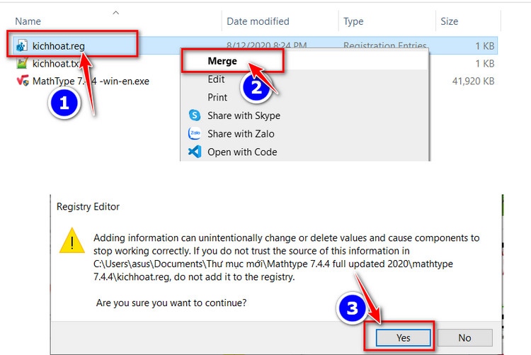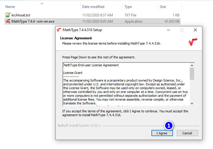 Nháy đúp vào phần MathType-7.4-win-en trong File vừa giải nén -> chọn Yes -> chọn I Agree -> đợi nó cài đặt xong -> ok đợi chạy xong Files copied là hoàn tất cài đặt.
