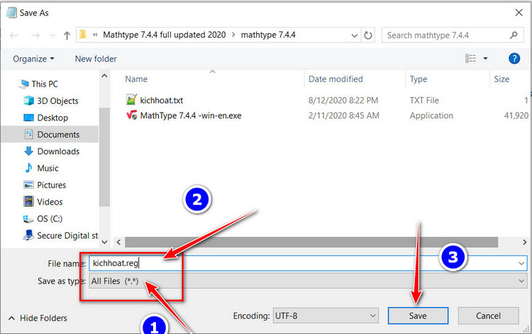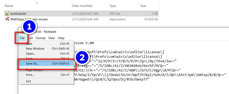 Sau khi tải về cài đặt như trên đến phần cr@ck ở đây mình sẽ mở file kích hoạt này lên sau đó vào file ->save as để lưu lại với đuôi là .reg